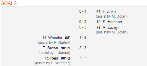 エクセターは88分、91分、92分と立て続けにゴールを奪取!あっという間に同点に追いついてしまったのだ。こんなのありえない…!