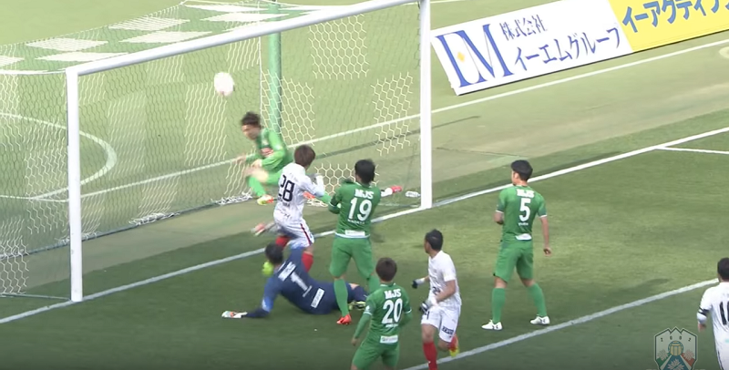 危険を察知し一目散にゴールへと駆け寄ると、難波のヘディングに対して身体を投げ出し決死のクリアを見せた。まさに「神クリア」だ。