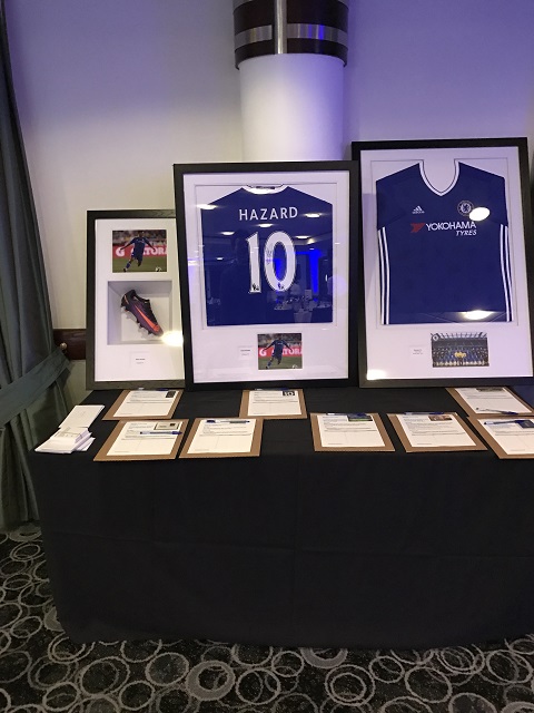 オークション用の商品。エデン・アザールのサイン入りグッズに加え、ファーストチームの練習見学券なるものまであった。かなりの高額になったことは間違いない…。