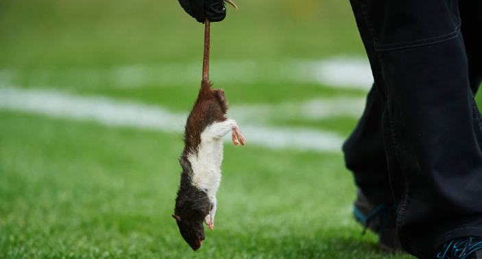 コペンハーゲンDFルドヴィグ・アウグスティンソンがコーナーアーク付近で何かを蹴り飛ばしていた。それはなんとネズミの死骸…。