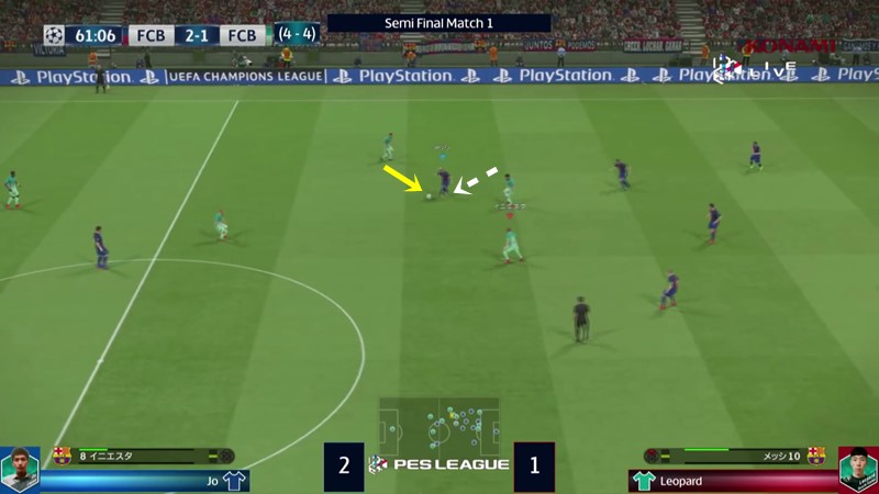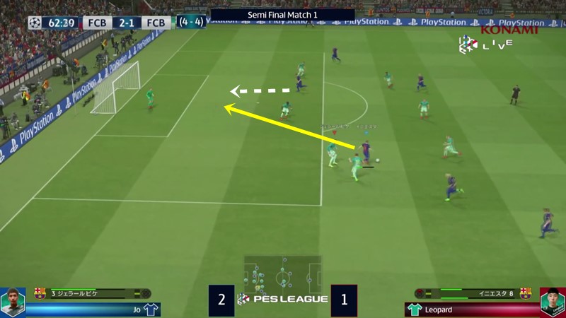 最終的には、じょーが2戦合計5-4で勝利。非常にテクニカルでゲームとしての質が高く、ぜひ動画で試合を観戦してほしいのだが(※下動画の4:20:50~、チーム設定以降であれば4:25:22~)、特に決勝点となったルイス・スアレスのゴールを画像を交えながら紹介したい。