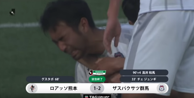 そしてタイムアップのホイッスルが鳴ると、群馬選手の多くがピッチへと崩れ落ちる。