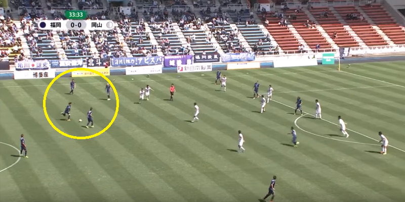 そんな岩下は先週末、實藤友紀とコンビを組みファジアーノ岡山戦に先発。0-0で迎えた34分、驚きのプレーでスタジアムを沸かせた。