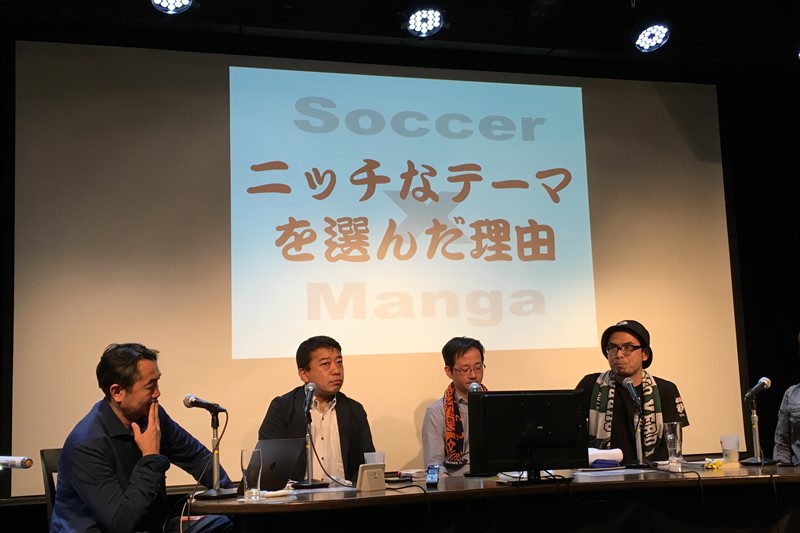 この夜、サブカル方面にも造詣が深い宇都宮氏の司会のもと、こだわりのサッカー漫画を世に送り出している人々の共演が展開された。