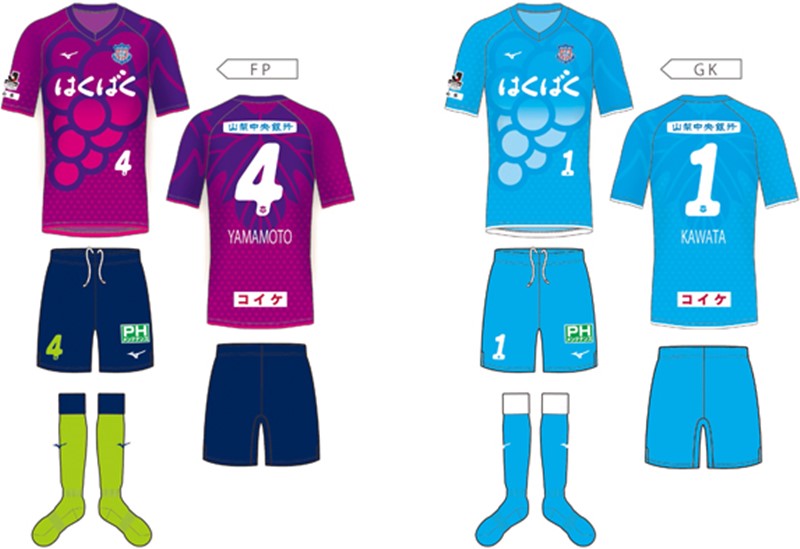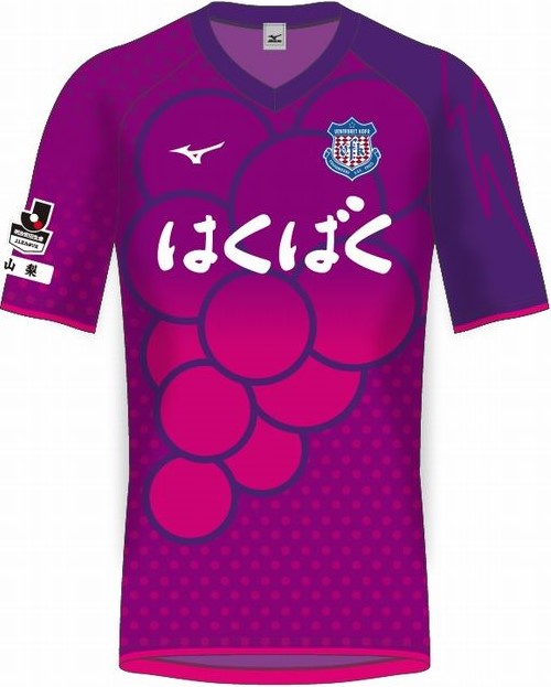 全身でもなかなか面白い配色となったこのユニフォームは、8月に行われるホームゲーム(5日のガンバ大阪戦、9日の浦和レッズ戦、26日or27日の川崎フロンターレ戦)で着用予定。真夏の甲府盆地で繰り広げられる強豪相手の3試合を“ぶどうパワー”で乗り切れれば、5年連続のJ1残留が見えてくるに違いない。