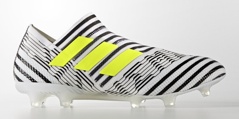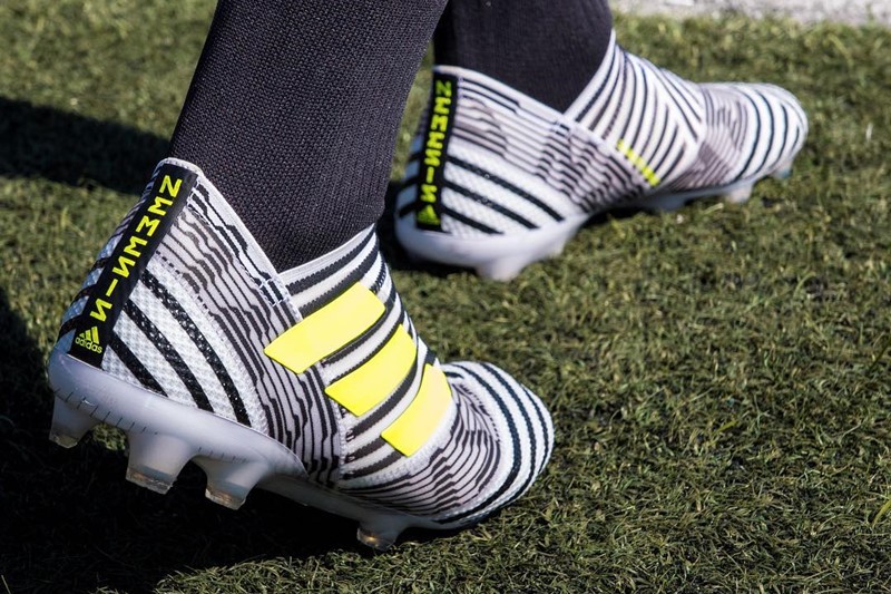 「ネメシス」は、2015年の大幅刷新により「エックス」「エース」とともに登場したフランチャイズ「メッシ」が進化したもので、バンデージテープ構造をadidas史上初採用。アジリティバンデージがテーピングのように足を包み込み、キレのあるフットワークとレスポンスの速いボールタッチを実現している。