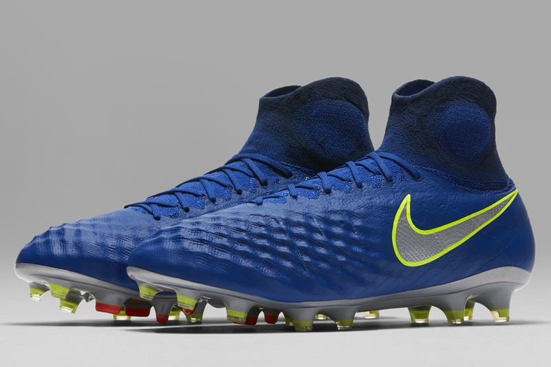 カンガルーレザー採用のフィット系モデル『ティエンポ レジェンド VI』は、クロームカラーのスウッシュに独特の模様が描かれている。