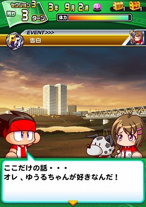 ちなみに、ゆうるちゃんはマネージャーなので練習パートナーにはなりません。・・・が、しかし!ここが『パワサカ』の萌えポイント。ゆうるちゃん含む「彼女候補」と呼ばれるキャラをデッキに加え、かつ告白イベントをクリアして、デートを重ねて仲良くなることでもパワサカくん(つまりアナタ)は成長できます。