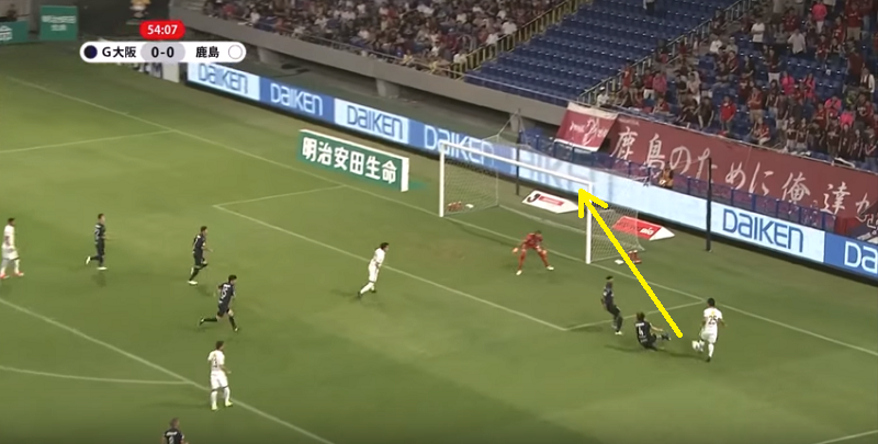 この時、遠藤は深い位置にまで走り込んでおり、ガンバ大阪の選手もカバーに入っていた。シュートを狙うにはあまりにも角度がなかったのだが…