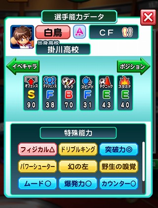 さっそく編集部Nも金特(超特殊能力)「幻の左」をげっとおおお!嬉しすぎて、マイナス能力の「フィジカル△」を消し忘れました・・・。
