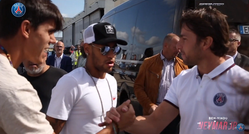 ネイマールは会見に出席するため同日の午前11時、パリ郊外にあるル・ブルジェ空港に到着。チャーター機から降りると、ちょっと意外な人物に出迎えられた。