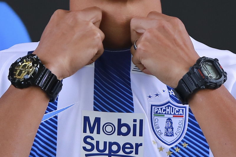 本田の腕時計といえば、以前契約していたイタリアの有名ブランド『GaGa MILANO(ガガミラノ)』など海外メーカーのイメージが強かったが、メキシコ移籍に際して選んだのは日本のブランドだった。