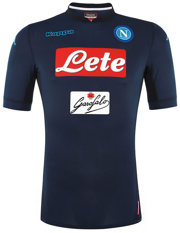 サードユニフォームのダークブルーは、アウェイユニフォームにも使われており、近年のナポリでは定番化している。エンブレムやKappaロゴのブルーとのコントラストが色鮮やか。