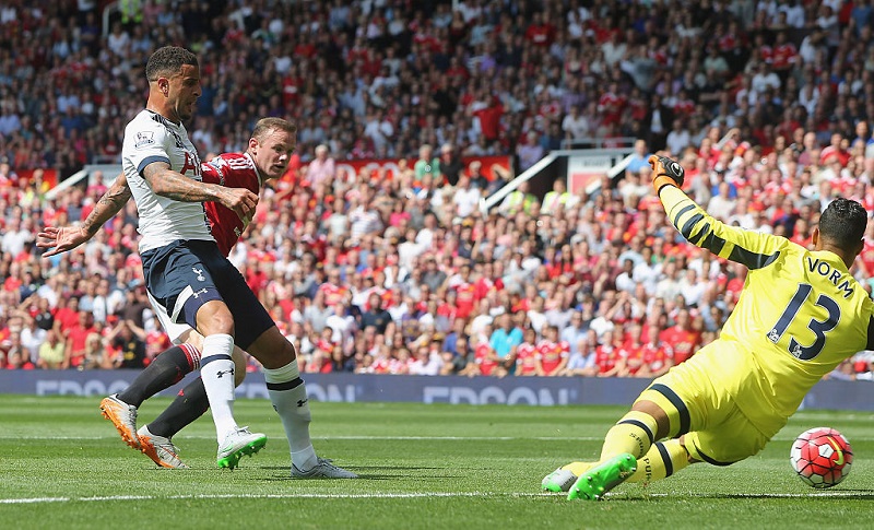 マンチェスター・ユナイテッド対トッテナムの開幕戦では、意外な形からゴールが生まれる。22分、右サイドを抜け出したアシュリー・ヤングがグラウンダーでクロスを入れると、ボールはフリーになっていたウェイン・ルーニーのもとへ。