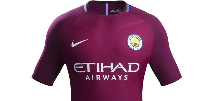 今季のシティのアウェイユニは、素敵なバイオレット。昨季の濃紺よりはかなり独創的だ。シティの歴史ある青は、首回りに見ることができる。
