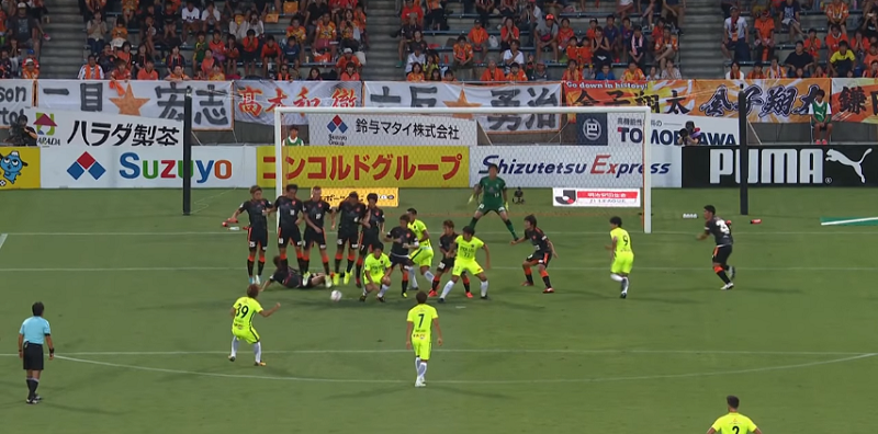 IAIスタジアム日本平で行われた清水エスパルス対浦和レッズ戦、0-0で迎えた9分に浦和はペナルティエリアの手前でフリーキックを獲得。