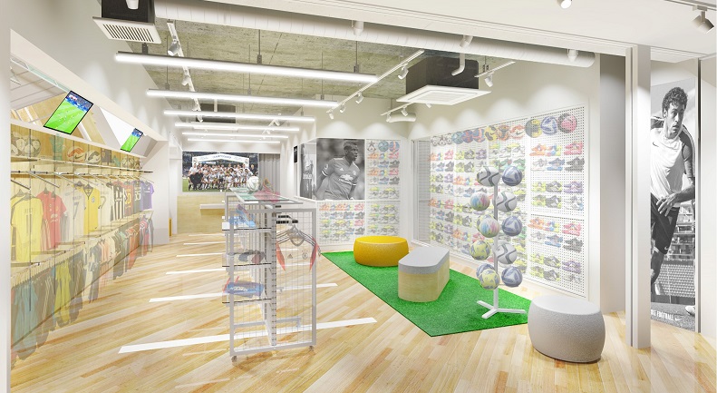 このフロアは、サッカーではキッズ専用フロアとして国内最大級の面積(フロア面積86,44㎡)となり、これからサッカーを始める子供や、試合に向けて練習に励む子供たちに向け豊富な商品ラインナップでサポートするという。