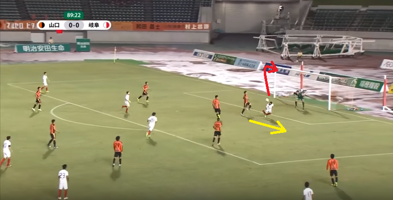 後ろを向いた状態でコースを狙い済ます技術も見事だが、もっと凄いのはニアサイドに動きながら逆方向にしっかりボールをコントロールしているという点だろう。