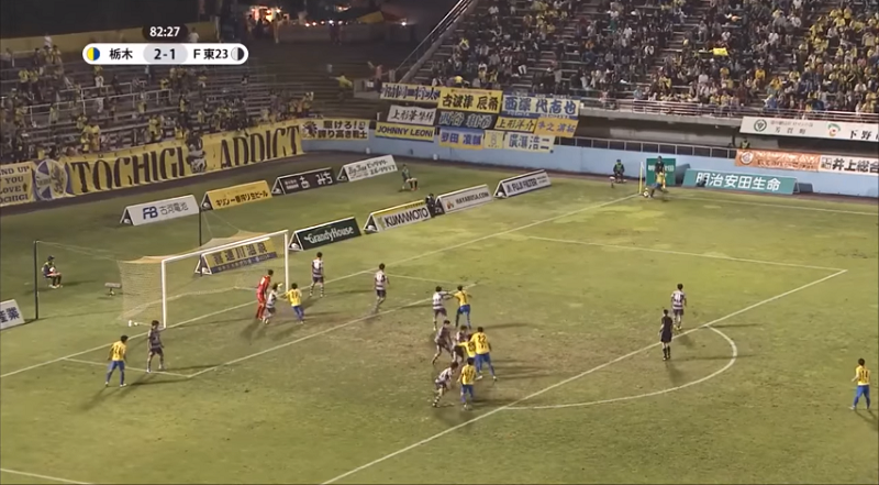 こちらは、栃木県グリーンスタジアムのゴール前の様子。