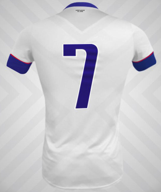 基本は既に使われている2016-17ホーム・アウェイキットと同じで、V字型の切り返しが特徴的なデザイン。胸の上部には国の標語“L’UNION FAIT LA FORCE” (団結は力なり)をプリントしている。