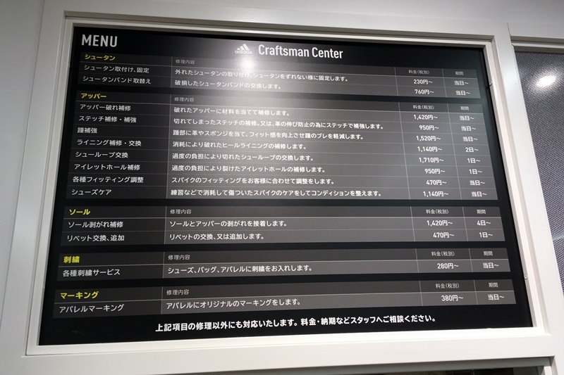 サービス内容はこんな感じ。リペアやカスタマイズ系はあまり知られていない気がするので、近いうちにクラフトマンセンター単体でのレポートを検討中だ。乞うご期待!