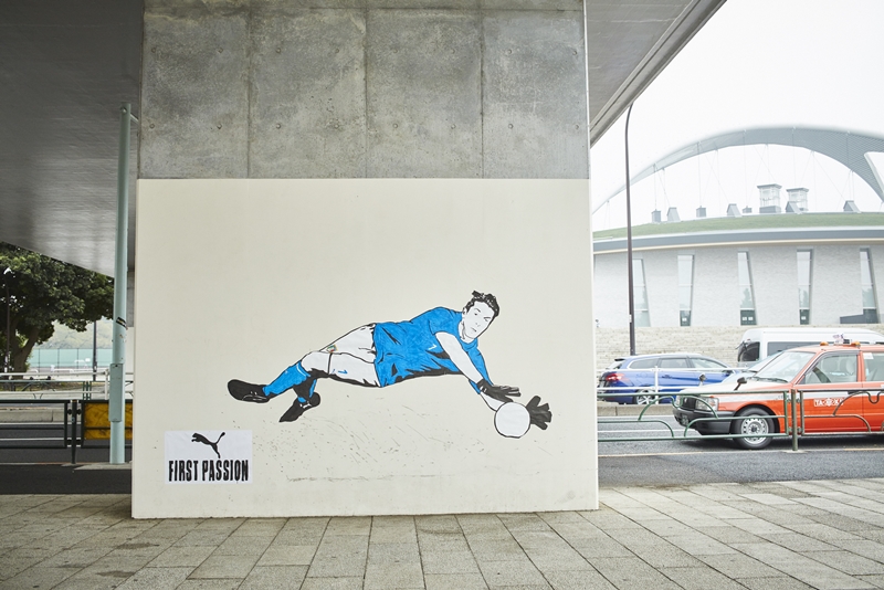 これを祝し、ブッフォンが世界大会の舞台としてプレーした、そして来年プレーするであろう都市において、背番号1のイタリア代表ホームキットを着用した彼の壁画が出現中。