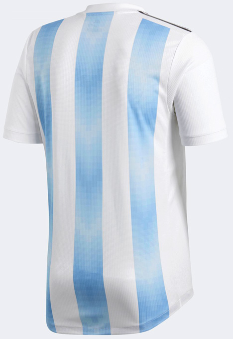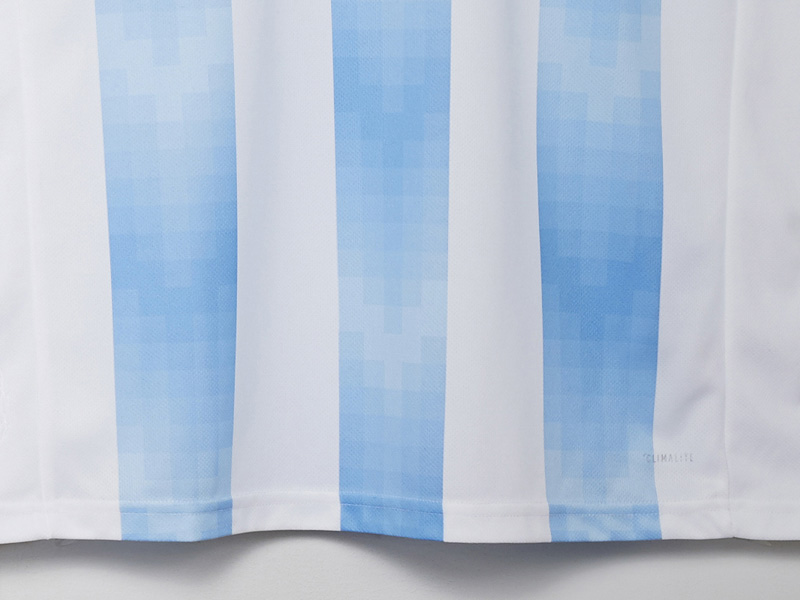 シンプルなストライプがアルゼンチン代表の代名詞だが、今回はピクセルグラフィックを取り入れたモダンなストライプ。拡大画像だと濃淡をつけたピクセル柄が鮮明に!