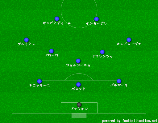 守護神ジャンルイージ・ブッフォンの前には『BBC』を配置。