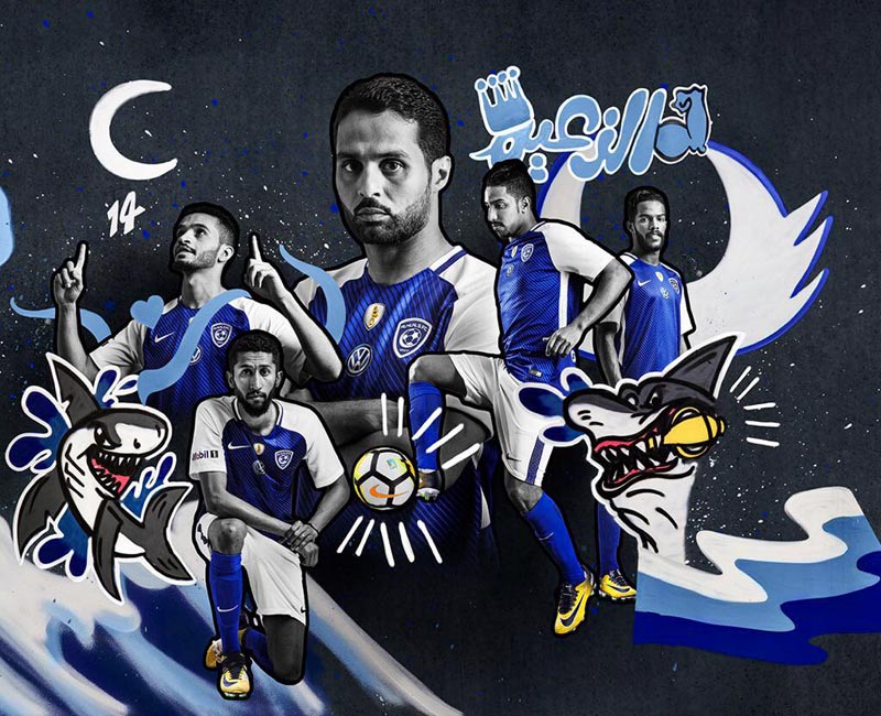 中東のイメージとかけ離れたポップなビジュアルイメージは、サウジのアーティスト“Rashid Al-Motaeeb”が手掛けたもので、鮫はアル・ヒラルのスピードや激しさを表現しているという。