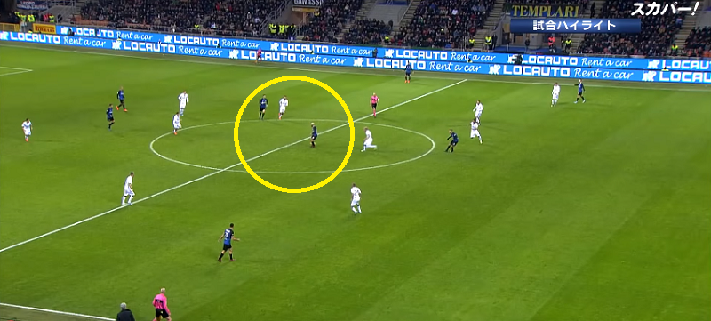 相手ゴールに背を向けた状態で背後にいたマウロ・イカルディに完璧なパスを通し、決定機を演出した。