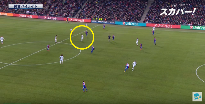 前線に僅かなスペースを見つけるとそこにスルーパスを送るのだが、あえてノールックの状態でこれを通す!