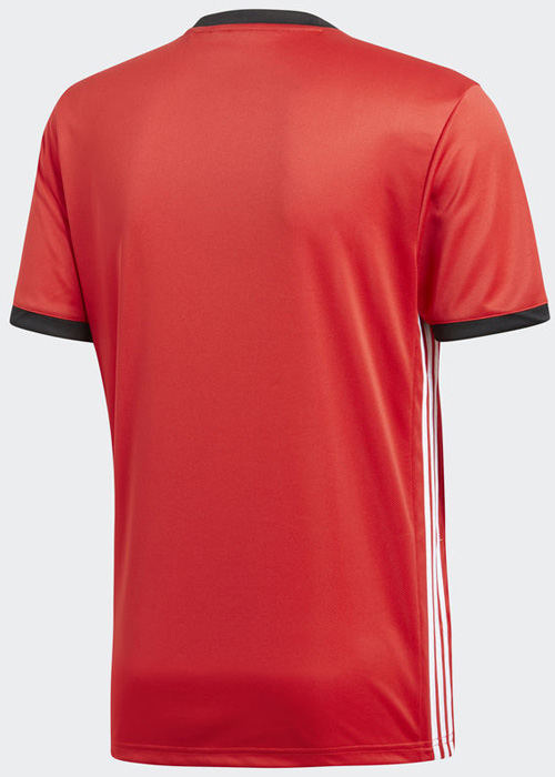 国旗のレッドを強調した定番カラーだが、チェッカーボード柄というエジプトにしては意外性のあるデザイン。スリーストライプスは脇に配している。首周りや袖口をブラックで彩るパターンは、2012年ロンドン五輪で使用したユニフォームに近い。