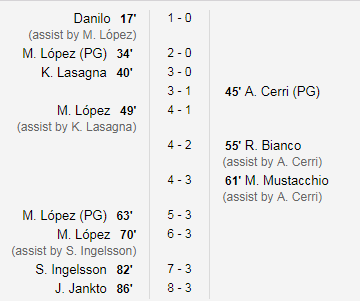 その後、ウディネがさらに4点を追加して、結局8-3というスコアで勝利する結果となった。
