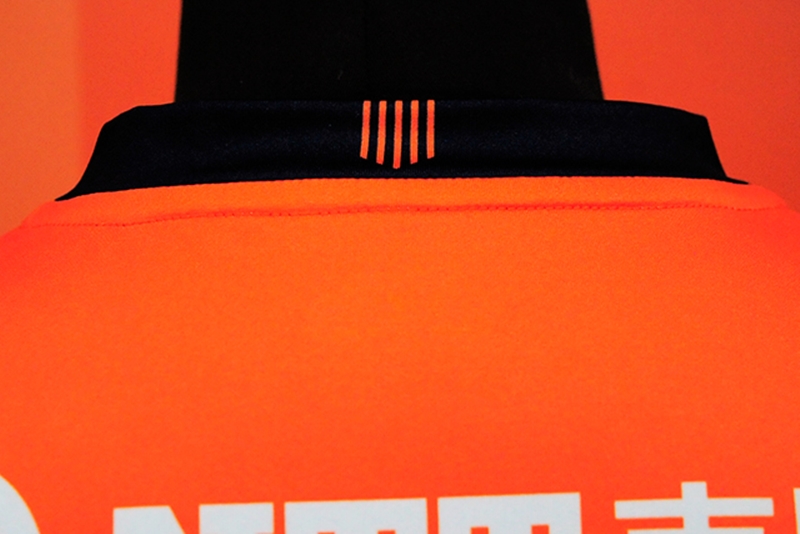 背面の襟部分にはクラブエンブレムを想起させるストライプを配置。