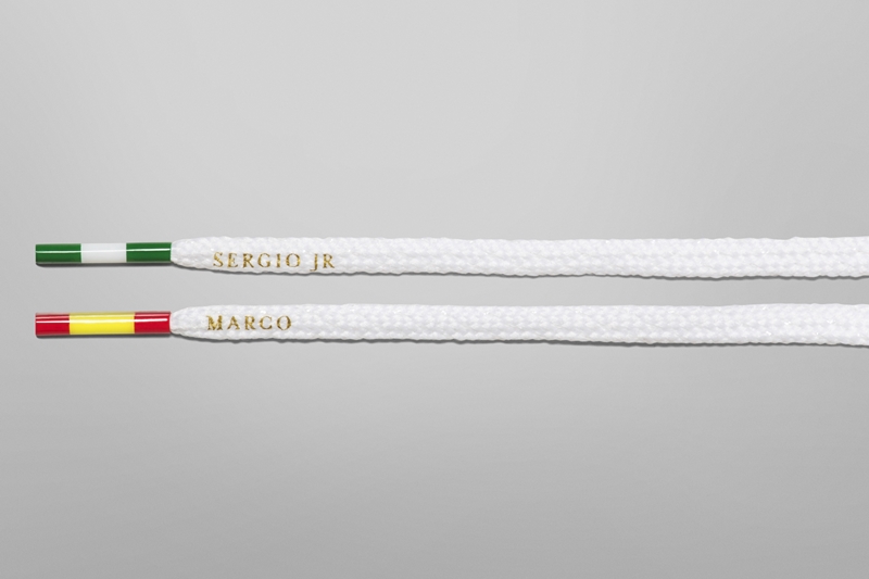 スペインと地元アンダルシア地方への思いは、シューレースの先のアグレットにも。