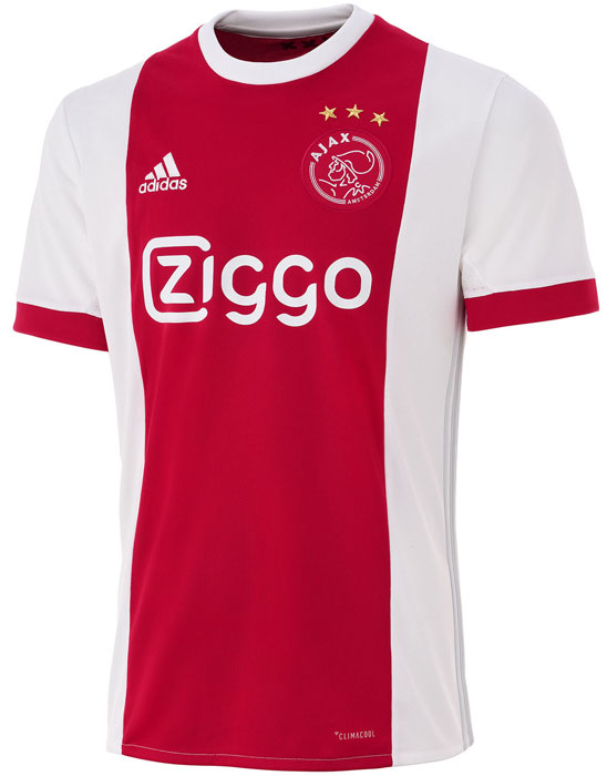 新しいホームユニフォームであっても、一目でアヤックスと分かる不変のデザイン。胸のスポンサーは2015-15シーズンから続く“Ziggo”(ケーブルTVやインターネットのプロバイダー)。スリーストライプスは脇部分に配している。