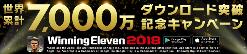 人気ゲームシリーズのモバイル版最新作『ウイニングイレブン2018』。そのダウンロード数が、世界累計7,000万を突破したことをKONAMIが発表した。