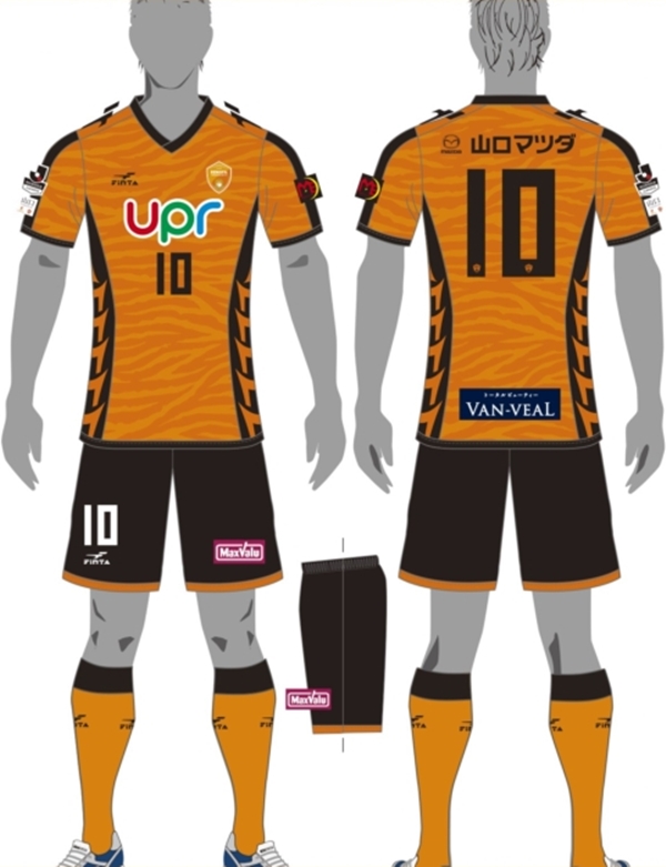 ホーム(1st)は、クラブカラーであるオレンジを基調としたデザイン。ボールを持てば、全員でゴールに向かって突き進み、最後まで走り抜く“レノファスタイル”を躍動感のあるグラフィックで表現している。