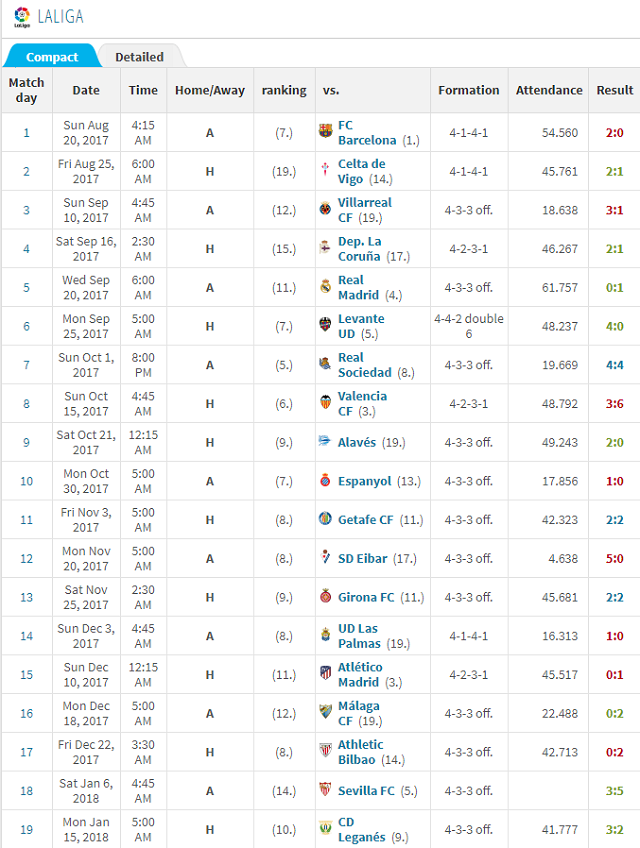 他にもレバンテ相手に4-0で勝利したかと思えばエイバルに5-0で敗れ、さらにはサンティアゴ・ベルナベウでレアル・マドリー相手にも勝利している。