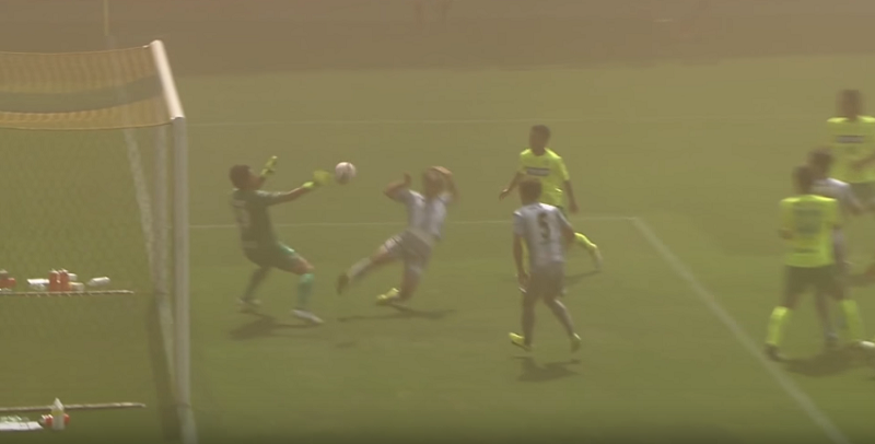 6月10日(土)に行われた第18節のジェフユナイテッド千葉対アビスパ福岡戦では、後半に入るとスタジアム全体を砂嵐が襲ったのだ(02:09から)。