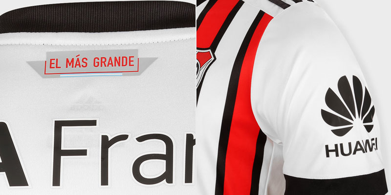 首元にはおなじみの“EL MÁS GRANDE”(最も偉大)をプリント。両袖には通信機器会社“HUAWEI”(ファーウェイ)のスポンサーロゴが入る。