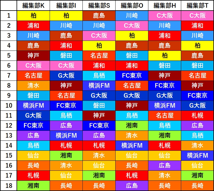 それでも、鳥栖のトップハーフ入りを当てたのは我ながらナイス(予想は6位、実際は8位)!