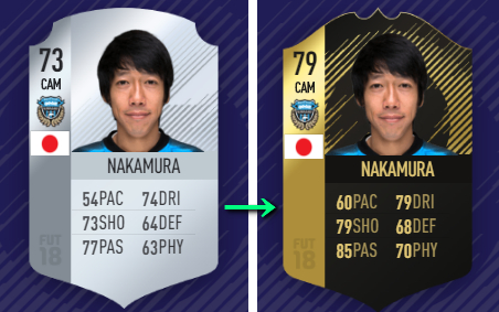 その中村憲剛が、サッカーゲームFIFA18の『Team of the week』に選ばれていたぞ!