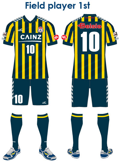 パンツ、ソックスともにダークネイビーを基調にイエローの差し色。ユニフォームサプライヤーはFinta(フィンタ)で継続。