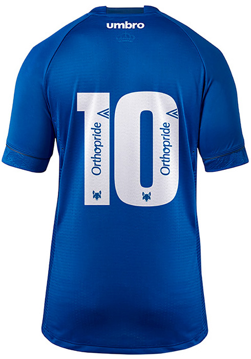 伝統のブルーを基調としたホームキット。クルゼイロと言えば南十字星のエンブレムが特徴だが、このユニフォームはその南十字星を、星の形のエンボスプリントで囲むようにデザイン。かなり“星づくし”のデザインとなっている。