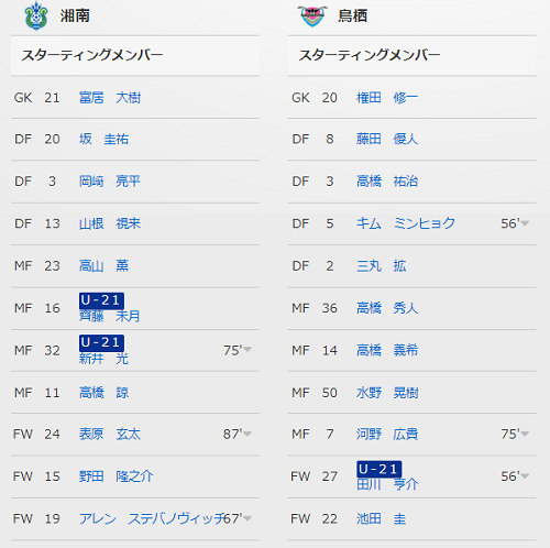 湘南ベルマーレ対サガン鳥栖の試合では、ある「名前」の選手が多くスターティングメンバーに名を連ねていた。