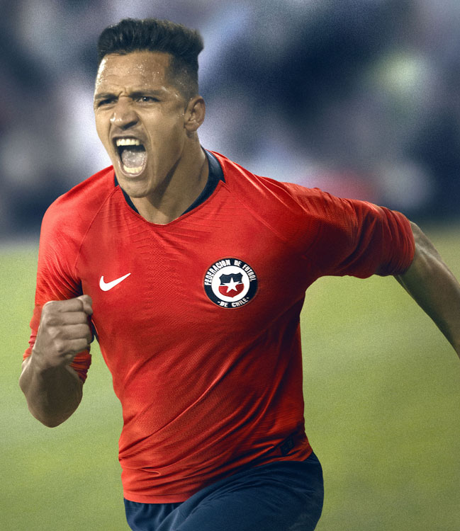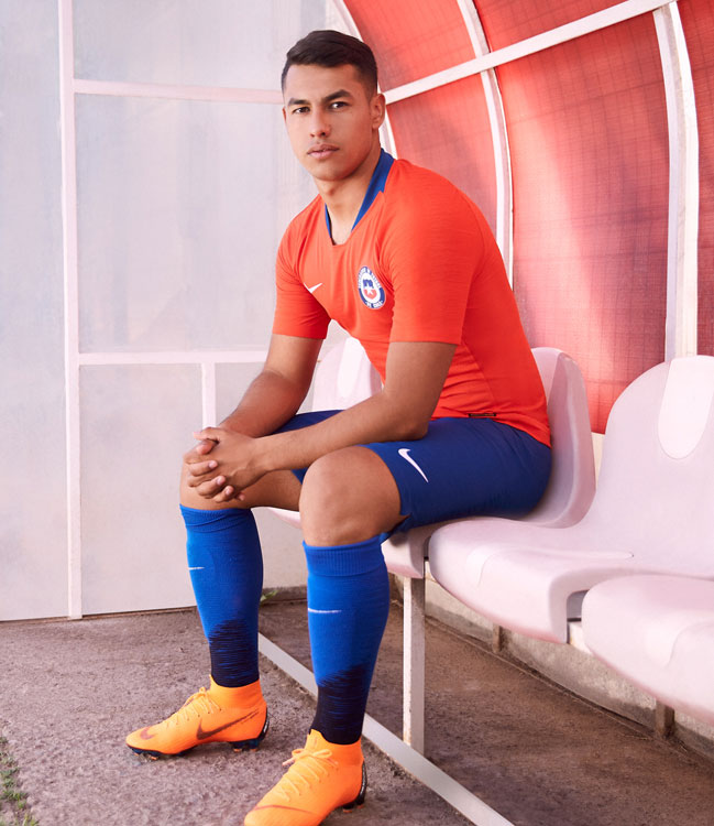 Nikeの2018年代表モデルの多くは、背面の首元に国を象徴するデザインのテープを配しているが、チリ代表は国章の盾をプリント。