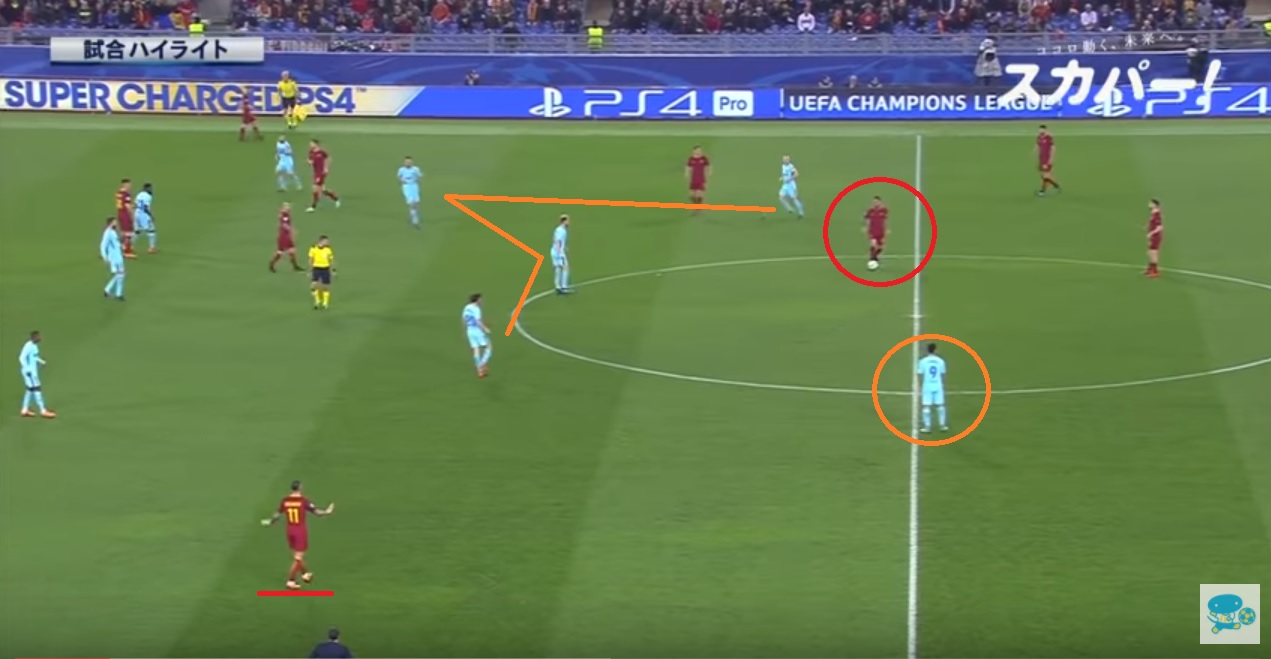 この画像は、アシスト役となったデ・ロッシがDFからボールを受け取ったシーンを切り出したものだ。