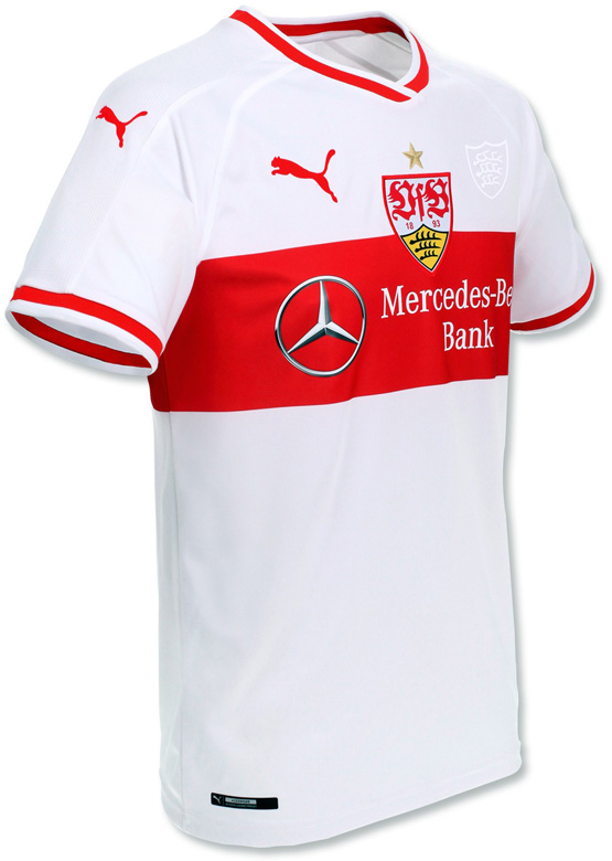 ホワイトを基調にレッドの差し色で、伝統的なシュトゥットガルトのユニフォームデザイン。しかしこれまでと大きく異なるのはエンブレムの位置で、1986-87シーズン以来31年ぶりに胸中央に配している。