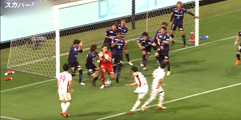 1-1で迎えた24分、三浦弦太が触れたボールをGK林瑞輝が手で触ってしまい、名古屋に間接フリーキックが与えられた。